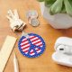 Um design brilhante vermelho, branco e azul e listras em um chaveiro de símbolo de paz.