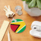 Esta chaveiro apresenta a bandeira nacional da Guiana.