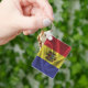 Chaveiro com a bandeira da Moldávia no estilo design de tecido ondulado. Este design apresenta as cores da bandeira moldava e o design com um belo efeito texturizado do material ondulante. Este design de bandeira é uma forma excelente de mostrar que você está orgulhoso de ser da Moldávia.