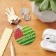 Bandeira de melancia vermelha e verde com listras e sementes. Texto personalizado.