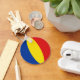 A bandeira da Romênia foi perfeitamente adaptada à FOB circular deste chaveiro. Um belo lembrete do patrimônio romeno.