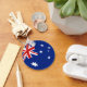 A bandeira da Austrália está perfeitamente adaptada à FOB circular desta chaveiro. Um belo lembrete da herança australiana.