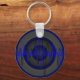 Design moderno e estilizado inspirado em auto-falantes e ondas sonoras. As ondas sonoras azuis brilhantes se movem através de círculos concêntricos em cinzas, preto e azul. Chaveiro com um design personalizável para você personalizar com seu próprio texto, imagens e ideias. Arte original criada usando técnicas digitais por Jess Perry.
