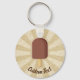 Ícone da palheta de sorvete de chocolate sobre fundo bege verde. Texto personalizado de ambos os lados.