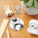 Sousaphone desenhando a preto sobre fundo branco, chaveiro redondo