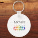 Chaveiro de teclas de piano de cauda para crianças, pianista ou professor. Chaveiro personalizado redondo fofo com monograma de nome elegante. Acessório personalizado para homens, mulheres e crianças. Design de teclado de instrumento clássico para instrutor de piano, aulas de música, etc. Favor de festa monogramado preto e branco divertido.