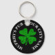 Chaveiro de trevo sortudo com nome de pub irlandês personalizado. Grupos-chave personalizados para os negócios. Logotipo de shamrock ventiço.