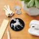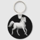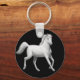Design de um cavalo branco trotando por Carolyn McFann do Two Purring Cats Studio em um chaveiro para fãs de equinos.