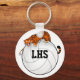 Chaveiro branco redondo com ilustração da agitação do tigre num voleibol. Personalizado com suas iniciais escolares, ou adicione um nome, ou frase como "ir tigres!" Divertido para jogadores de vôlei, pais, impulsionadores ou treinadores.