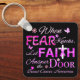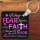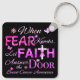 Cancer inspirador de mama, citação de "Quando O MEDO Bate, Deixe a Fé Responder a Porta" para lutadores canceres que têm fé em Deus.