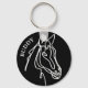 Chaveiro de desenho do esboço da cabeça equestre com nome personalizado. Design de cadeia de chave personalizada para o amante de cavalos, cavaleiro, proprietário, etc. Ideia única de Natal ou presente de aniversário para ele ou ela. Também é bom como o favor do partido ou o negócio cede. Adicione o nome ou o slogan da sua própria empresa, opcionalmente. Desenho de arte em linhas brancas e pretas.