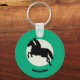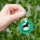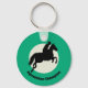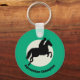 Chaveiro de Design equestre com texto personalizável e cor de fundo.