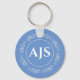 O Keyring tem um design em azul e branco com um monograma. Ideia atrativa que pode ser personalizada. Tecla com iniciais.