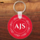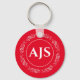 Tecla com iniciais. O Keyring tem um design em vermelho e branco com um monograma. Ideia atrativa que pode ser personalizada. Presente pessoal com as iniciais do destinatário.