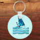 Design gráfico de navegação com chaveiro de ondas azuis.