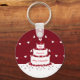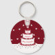 O anel-chave de presente do aniversário do Casamento Ruby Personalizado 40º Anniversário O design mostra um bolo vermelho e branco de três camadas rodeado por um revestimento cardíaco e um confete. Os nomes do marido e da esposa daqueles que celebram quarenta anos de casamento também são mostrados e podem ser alterados como desejado. Um belo presente para casais, pais ou avós que completaram 40 anos.