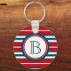 Design de temas náuticos com decoração em forma de monograma, em forma redonda, com ilustração em forma de corda sobre fundo listrado a azul, vermelho e branco