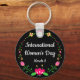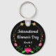 Chaveiro Floral Internacional das Mulheres. Um belo fundo floral negro com a tipografia moderna Dia Internacional da Mulher 8 de março. Celebrar mulheres de todo o mundo. Um presente perfeito para mulheres e raparigas!
