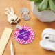 Chaveiro do Dia Internacional da Mulher moderno. Um passado moderno cor-de-rosa com centro roxo adornando as palavras Dia Internacional da Mulher. Um presente perfeito para as mulheres. Excelente para funcionários, você mesmo, família, amigos, parentes, marchas, comícios, estudantes, chefes, mães e até mesmo avós.