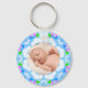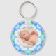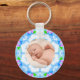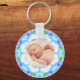 Anel de Chave do Dia dos Avós Personalizado de Pastéis Bonito Moles Azuis. Calma e Feliz Pastéis Azuis, Verdes e Cor-de-rosa Foto de Natal Personalizada Quadro redondo Chaveiro de Natal. Um chaveiro de cor suave para o seu estilo multicolorido azul e verde. O quadro design é um adorável padrão geométrico de abstração que assume designs tradicionais de blocos coloridos. Em cores pastéis de azul com verde brilhante e cor-de-rosa bonito para o primavera, verão ou vibrações de inverno. Personalize-o substituindo as duas fotos, na frente e atrás, pelas suas próprias para um presente para sua avó. Tome as memórias da sua família. Um presente de excelente para avó, avós, abuela, avó, vovó, vovó, vovó, vovó, oma, ou meemaw. Um presente de manutenção de orçamento, para comemorações familiares ou primeiros bebês.