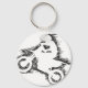 Uma silhueta invertida em escribble preto revelando um motociclista puxando uma roda