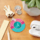Padrão de bolinhas brancas cor-de-rosa e padrão turquesa/teal/aqua chevrons, com círculo de diamante azul-turquesa e de diamantes-rosa (menos diamantes reais), faixa e letra monográfica mudam para qualquer letra a,b,c,d,e,f,g,h,i,j,l,m,n,o,p,q,r,s,t,v w,x,y,z.