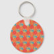 Um Chaveiro com uma FOB bonito, com um padrão de falso-patchwork estilo country de hexágonos de laranja distante Floral, vermelha, amarela e laranja e Bolinhas brancas sobre fundo laranja. Coordena-se com o alcance do Orange Fizz.