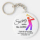 É divertido ANDAR ATÉ O chaveiro do Golfe. Vestir este chaveiro de Golfe vai ajudá-lo a melhorar sua jogada de golfe? Provavelmente não, mas será um acessório na moda, onde quer que você esteja no curso. A design mostra um ícone de golfista e um texto divertido que diz SWING UNTO THE LORD, baseado na Escritura Cristã 'Cante ao Senhor uma nova canção'. Por baixo, há uma citação inspiracional cristã marcante, que diz LUTA CONTRA A BOA LUTA E TERMINA O CURSO, e se baseia na Bíblia cristã verso 2 Timothy 4:7. Este texto é PERSONALIZÁVEL. Este chaveiro de golfe faz um presente excelente para a pessoa que ama golfe e ama o Senhor, especialmente para o Natal, os Aniversários, o Dia de as mães, o Dia de os pais, a viagem de golfe, e durante todo o ano. Este gramado de golfe também faria um favor de excelente entregue em torneios e eventos de golfe cristãos. Parte da Coleção GIFT FOR GOLFERS por Designs Bereanos. Escolha entre uma ampla seleção de cartões relacionados ao golfe, decoração doméstica, equipamento esportivo e presentes, projetados por #bereandesigns