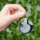 Ao longo de muitos milhares de anos, o material orgânico que antes compunha a pequena criatura amoníaca é substituído por minerais, deixando-nos com padrões intrincados que muitas vezes são mais bem vistos quando as cores são invertidas (como aqui). Um chaveiro interessante para qualquer entusiasta fóssil.