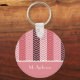 Adicione um estilo na moda ao seu estilo pessoal com este chaveiro de padrão de stripes de chevron rosa variegado. Personalize esta moda design de ziguezague rosa, acrescentando o nome de qualquer mulher moderna.