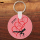 Chaveiro de botão de ginástica com ginasta e corações vermelhos. Nome personalizado.