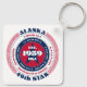 O Chaveiro do Estado do Alasca tem um design de tipografia circular com cores vermelha, branca e azul em um fundo branco. O texto inclui o nome, capital, abreviação de estado, nome do residente, região, fuso horário, coordenadas geográficas, ano de sua soberania e país - Estados Unidos da América. Ideia patriótica única de presente.