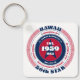 A Chaveiro do Estado do Havaí tem um design de tipografia circular com cores vermelha, branca e azul sobre fundo branco. O texto inclui o nome, capital, abreviação de estado, nome do residente, região, fuso horário, coordenadas geográficas, ano de sua soberania e país - Estados Unidos da América. Ideia patriótica única de presente.