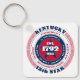 O Chaveiro do Estado do Kentucky tem um design de tipografia circular com cores vermelhas, brancas e azuis em um fundo branco. O texto inclui o nome, capital, abreviação de estado, nome do residente, região, fuso horário, coordenadas geográficas, ano de sua soberania e país - Estados Unidos da América. Ideia patriótica única de presente.