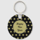 Tenha um Feliz ano novo... no estilo de vintage... Um fundo preto com bolinhas douradas... um círculo central dourado com letras negras e sotaques de cinzas escuras... lê... "Feliz ano novo"... Excelente pequena ideia de presente... estocar o gafanhoto... o favor da festa... para o Natal ou o Ano Novo... ou adicionar um pouco de espírito de férias vintage às suas próprias chaves...