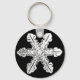 Este chaveiro de floco de neve preto e branco apresenta uma fotografia de um floco de neve tirada por Wilson Bentley em 1902. Esta imagem foi ligeiramente editada a partir da imagem original, que está no dominio público.