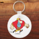 Um jogador de futebol de desenho animado carregando a bola em fuga. Esta design parece realmente eficaz nesta Chaveiro