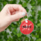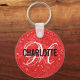 Chaveiro de brilho vermelho-chic com um monograma de script branco e um nome de tipografia preta. Personalize com seu nome e inicial.