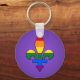 Chaveiro redondo com símbolo fleur-de-lis (fleur-de-lys ou flor de lírio) com faixas arco-íris de LGBT (pessoas lésbica, gay, bissexual e transgênero), orgulho gay design