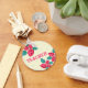Um chaveiro com fundo de bege com pequenos pontos verdes. Ilustrações de rosebudas cor-de-rosa inspiradas na safra. O texto central diz "Professor" e pode ser personalizado