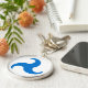 "(Sem Fio) Um azure triskele." A cor de fundo (mostrada em branco) pode ser alterada mediante solicitação.
