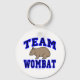 Equipe Wombat: Você pode contar com os ubatas para fazer o trabalho. Não importa o que aconteça. Crescente do time Wombat com letras azuis e pretas.