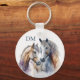 Esta chaveiro apresenta uma bela pintura em estilo de vassoura de duas cinzas e cavalos marrons juntos. Seu monograma está no lado superior esquerdo, e tudo é colocado sobre um fundo branco. O verso tem o texto em dois campos.