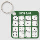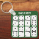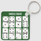 Adicione um nome ou uma mensagem personalizada para criar o chaveiro perfeito personalizado para fãs que jogam dominó e outros jogos. Esta cadeia-chave apresenta ilustrações simples e desenhadas à mão de dominós brancos com pontos pretos e impressão sobre um fundo verde.