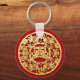 Corte em papel chinês ouro de uma cabeça estilizada de tigre (modelo n°6) num círculo com pequeno ideograma de Fu (Sorte ou Fortuna) + peixes Koï. Design no chaveiro redondo básico com fundo vermelho. Você pode mudar facilmente a cor de fundo clicando no botão personalizar. Disponível com outros cortes de papel Tigre do ouro. Cartão de saudação e cartão postal. Perfeito para um Ano Novo Chinês moderno e eterno do Tigre 2022 ou para o Aniversário (nascer pessoas no Ano do Tigre). — "O Tigre (寅) é um dos ciclos de 12 anos de animais que aparecem no zodíaco chinês relacionado ao calendário chinês. O Ano do Tigre está associado ao símbolo da Sucursal Terrestre 寅. (...) O nascer Pessoas dentro destas gamas de datas pode ser considerado nascer no "Ano do Tigre", ostentando simultaneamente o seguinte sinal elementar: 13 de fevereiro de 1926 - 1 de fevereiro de 1927 = Tigre de Fogo, 31 de Janeiro de 1938 - 18 de fevereiro de 1939 = Tiger da Terra Fevereiro de 1950 - 5 de fevereiro de 1951 = Metal Tiger, 5 de fevereiro de 1962 - 24 de Janeiro de 1963 = Water Tiger, 23 de Janeiro de 1974 - 10 de fevereiro de 1975 = Wood Tiger, 9 de fevereiro de 1986 = Tigre-Fogo, 28 de Janeiro de 1998 - 15 de fevereiro de 1999 = Tigre-Terra, 14 de fevereiro de 2010 - 2 de fevereiro de 2011 = Tigre-Metal, 1 de fevereiro de 2022 - 21 de Janeiro de 2023 = Tigre-Água, 19 de fevereiro de 200000000 - 7 de fevereiro de 2035 = Tigre de madeira (...) Wikipedia