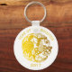 Estilo chinês cortado em papel pelo Ouro Rooster. Design no chaveiro redondo com "ANO DO ROOSTER" e ANO para personalizar sobre fundo branco. Cartão de saudação, produtos de artesanato, produtos para uso doméstico, eletrônicos, vestuário e muito mais... Perfeito para o Ano Novo Chinês do Cartaz ou Aniversário (nascer pessoas no Ano do Caroço).