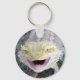 Um dragão barbudo feliz olhando para cima com um grande sorriso aberto.