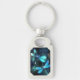 Duas libélulas transparentes, luminosas, turquesas, desenhadas artisticamente sobre fundo noturno, com algas e vagalumes luminescentes do lago. Dragonfly brilhante.
