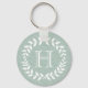 Accessorize in style with this personalized mint green and white monogrammed keychain. Design features modern laurel wreath leaves and stylish typography initial. Monogram in center is simple to customize. Makes an elegant and useful bridesmaid, groomsmen, and bridal party keepsake gift idea and compliments chic wedding greenery.