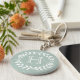 Accessorize in style with this personalized mint green and white monogrammed keychain. Design features modern laurel wreath leaves and stylish typography initial. Monogram in center is simple to customize. Makes an elegant and useful bridesmaid, groomsmen, and bridal party keepsake gift idea and compliments chic wedding greenery.